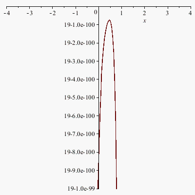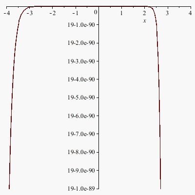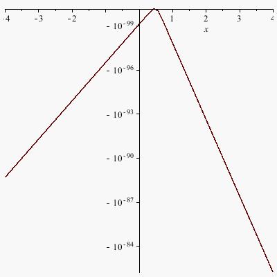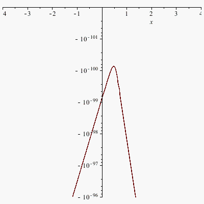plot( ff-17, x=-4..4, axis[2]=[mode=log], view=-1e-96..0 ) ;