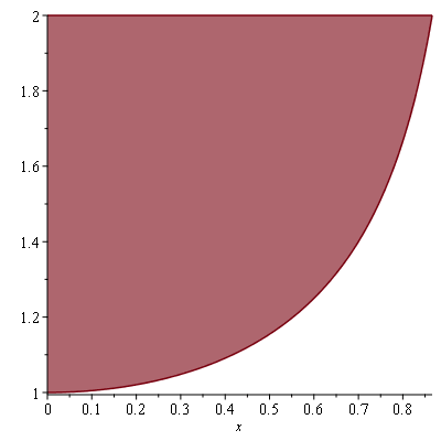 plots:-shadebetween(2, 1/sqrt(1-x^2), x=0..sqrt(3)/2);