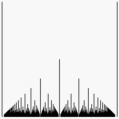 A nice next step might be to dynamically construct F depending upon the loop index k (and thus also upon w). The bookkeeping for that is a bit trickier, though, and may involve changing how you build L as well. The idea is to produce the same total number of values for F for each frame, using each k and w value, but to construct them with a repeatedly changing value range. It would mean that the central portion of the plots would remain filled with lines, as it zooms. That would be cheaper to produce, and leaner, than simply bumping up the value passed to farey() to produce a single, re-used, and very large F.