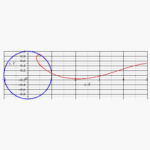 {X(0) = 1, Y(0) = 0, lambda(0) = (1/4)*65^(1/2)*4^(1/2), x(0) = 5, y(0) = 1/2, (D(X))(0) = 0, (D(Y))(0) = -1}