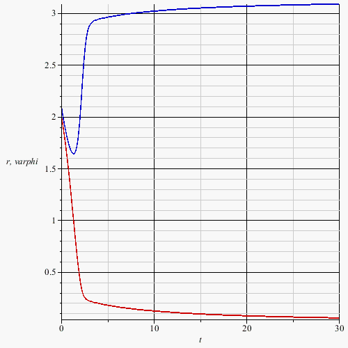 soln := dsolve({eq1, eq2, ics}, {r(t), `&varphi;`(t)}, numeric, method = gear)