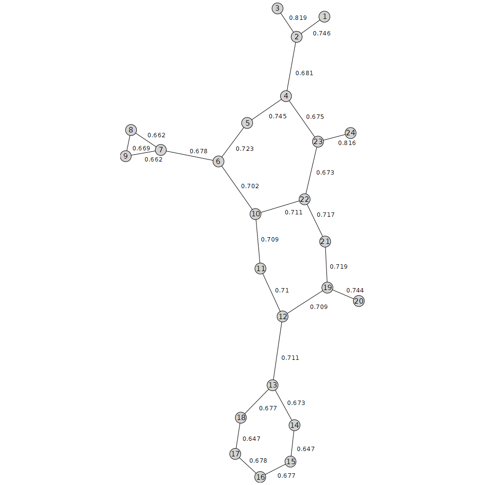If you make a larger size plot using size=[1000,1000] then you can get minimal overlap. The orientation of the plot differs each time you hit enter on the DrawGraph command, and that influences the amount of overlap, so you want to repeat until you get a nice result. Then exporting with the right-click menu to prn gives you a 1000x1000 pixel image.