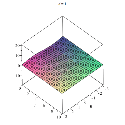 >animate(plot3d,[y(theta,t),theta=-Pi..Pi, t=0..10],A=1..20,axes=boxed);