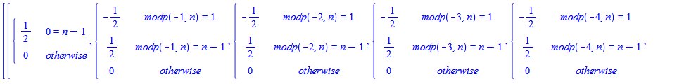Matrix(8,8, (i,j) -> piecewise(i-j mod n = 1, -1/2, i-j mod n = n -1, 1/2, 0));