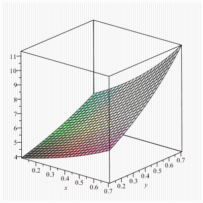 plot3d(v(x, y, 1), x=0.101..0.709, y=0.101..0.709)