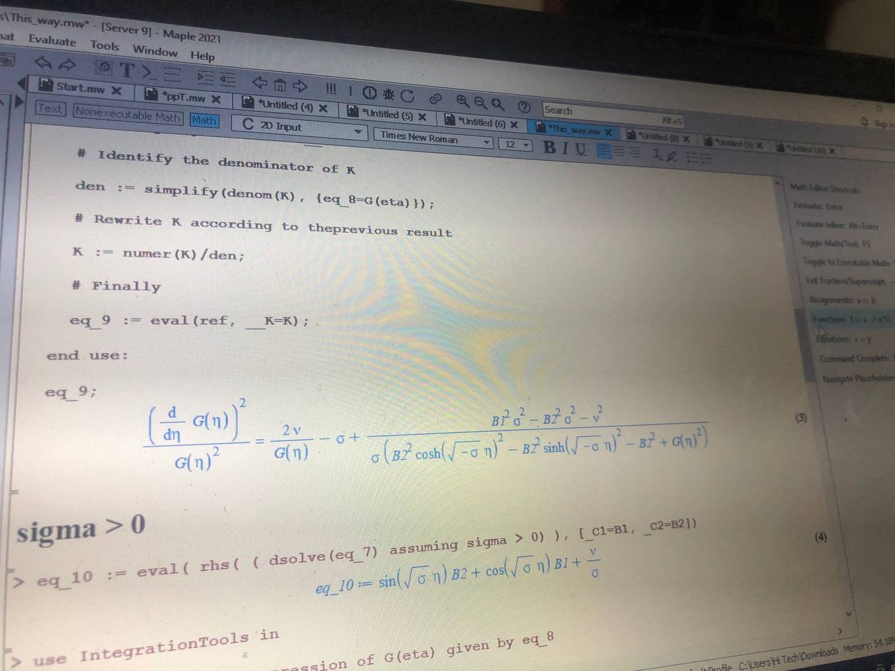 @mmcdara i can't see any file with my maple version and i fixed your version code by simplify denominator of eq_9 i get the exact equation .