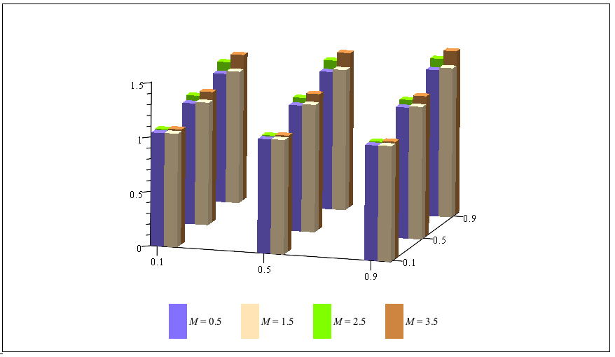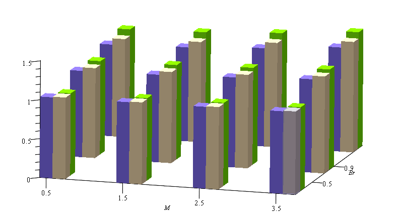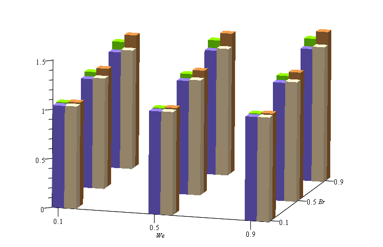 If it so, a bar-graph might not be the best representation to use (observe that it is already quite delicate to understand what the dependencies of Nu to Br, M, We are by looking to the "3D clustered bar-charts" I construct.