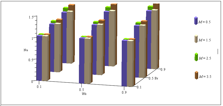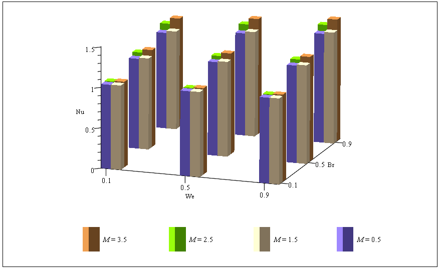 Bar Chart  are mainly used to quickly understand visually how a quantity (Nu in your case) depends on several categorical data (Br, M, We). Categorical means these data have a finite number of values (they could be "red", "green" and "blue" or 1, 2, 3 after coding)..