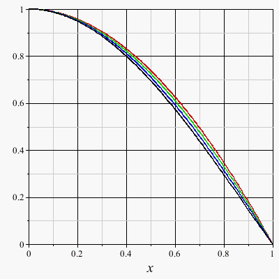 restart; with(plots); ha := 15; alp := (1/180)*(5*3.14); rkVals := [5, 10, 15, 20]; f := 1-x^2+c[1]*(-x^3+x^2)+c[2]*(-x^4+x^2); eq1 := diff(f, `$`(x, 3))+2*alp*rk*f*(diff(f, `$`(x, 1)))+(4-ha)*alp^2*(diff(f, `$`(x, 1))); eq2 := collect(expand(eq1), c); a[1] := subs(x = 1/6, eq2); a[2] := subs(x = 2*(1/6), eq2); plts := NULL; colors := [red, green, blue, black]; for j to numelems(rkVals) do rk := rkVals[j]; p := fsolve({a[1], a[2]}); plts := plts, plot(eval(f, p), x = 0 .. 1, color = colors[j]) end do; plots:-display([plts])