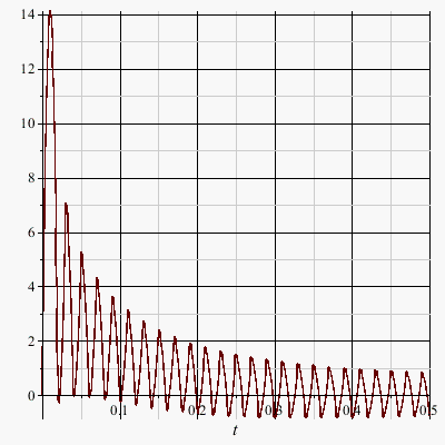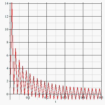 2. If I had known that I could invoke an "Euler" method, then I probably would have tried this to investigate numerical oscillation. This is based purely on some half-forgotten(?) idea that many numerical methods for solving ODEs/PDEs are "underdamped" and produce errors of alternating sign at adjacent solution points - which looks like oscillation. However "Euler" methods tend to be overdamped and produce errors of the same sign at adjacent solution points - which doesn't look like oscillation