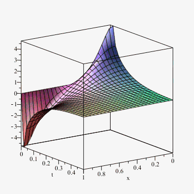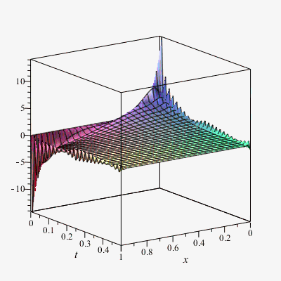 1. In the attached, without using the 'method' option, I can actually produce a 3-D plot for v(x,t) which does not seem to exhibit the same numerical oscillation - although if I then produce the 2-D slice along v(0,t), then the numeric oscillation "reappears"