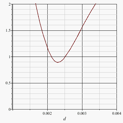 plot(Q(d), d=0.001 .. 0.004, numpoints=5, view=0..2);