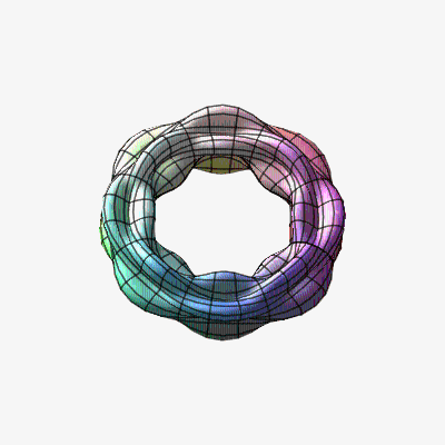 1. the simplest possible torus, obtained by setting both the 'major' radius (ie R) and 'minor' radius (ie r) in the above definition to be constants