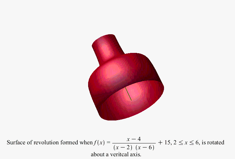 SurfaceOfRevolution(g(x), x=2..6, axis=vertical, output=plot, axes=none);