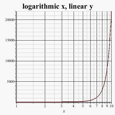 title= "logarithmic x, linear y",