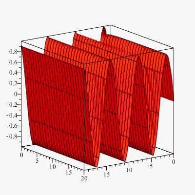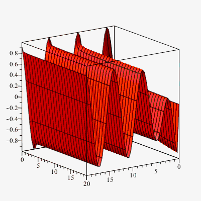 plot3d(u, 0 .. 20, 0 .. 20, color = red);