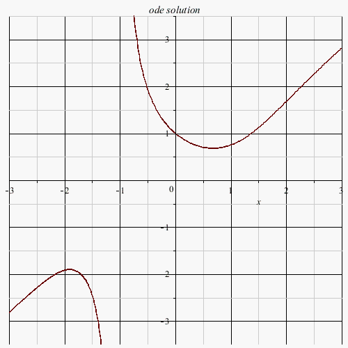 plot(rhs(sol), x=-3..3, discont=[usefdiscont], title=`ode solution` );