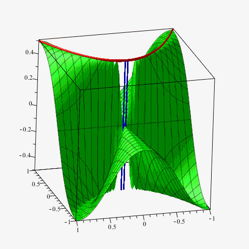 p1:=plot3d(f,-1..1,-1..1, numpoints=10000, color=green):
