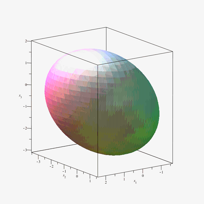 fnew:=simplify( (T.X+X0)^+. A. (T.X+X0) + b.(T.X+X0) + c ); # ==> ellipsoid